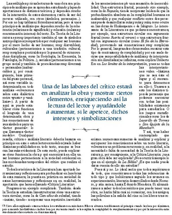 La crítica literaria consiste en un ejercicio de análisis y valoración razonada de una obra literaria en un medio de comunicación actual; por eso cabe distinguirla de la Historia literaria o Historia de la literatura, que realiza una crítica y valoración muy a posteriori y frecuentemente de forma más documentada, científica y ecléctica. Es el análisis, interpretación y evaluación de las obras literarias a la luz de unos patrones existentes o con el fin de crear otros nuevos. La crítica teórica es el estudio de los principios por los que se rigen la narrativa, la poesía y el teatro y su objetivo es definir la naturaleza particular de la literatura. La crítica práctica es el triple acto de leer y experimentar la obra literaria, emitir un juicio sobre su valor e interpretar su significado. Modelos de crítica literariaExisten dos grandes modelos: la que pretende ser objetiva y científica; y la que reconoce la inevitable subjetividad de su punto de vista, y con frecuencia incluso la expone abiertamente. En el fondo, la cuestión que separa estos modelos es el papel del gusto en la capacidad de análisis: ¿es algo superior al crítico, o podemos controlar su grado de influencia? Eso se relaciona, a su vez, con una de las funciones primordiales de la crítica periodística en general: educar el gusto del público. Por último, existe también la llamada «crítica impresionista», que expone las sensaciones de lectura creando una obra de arte lingüístico, en la que la estética es mucho más importante que el rigor científico o analítico. En esos casos, como el de «Azorín», la obra crítica nos permite conocer más en profundidad al propio crítico que al objeto de análisis. Hay autores que sostienen que esta es la única clase de crítica posible puesto que, como dice el dicho, «todo depende del cristal con que se mira». La función de la crítica es ancilar, y muchas veces debe exponer lo que falta en una obra. Los puntos de vista de la crítica literaria, para que sea objetiva, deben ser muchos, muy distintos y eclécticos. Las metodologías utilizadas pueden ser la positivista, la semiológica, la narratológica, la psicológica, la sociológica, la estructuralista, la deconstructiva, la Estilística descriptiva, genética, funcional y estructural y la Estética de la recepción, entre las más importantes. Muy diferentes escuelas dentro de la Estética y la Teoría de la literatura han estudiado por otra parte el hecho literario, desde el importante Formalismo ruso, el Postformalismo ruso, el New Criticism, el Marxismo, el Estructuralismo checo y francés, la Narratología, el Postestructuralismo, el Generativismo, la Pragmática literaria, la Lingüística del texto, la Semiótica, la Neorretórica, el Psicoanálisis, el Feminismo, el Culturalismo, la Deconstrucción, el Multiculturalismo, el Neohistoricismo etc. Algunas líneas de investigación de la crítica literaria estudian la relación de la literatura con otras formas de expresión estética. Así, encontramos interesantes estudios de Pintura y Literatura y, más recientemente, de Música y Literatura. Se trata de formas de la Literatura comparada. Por último existe el método de la crítica acompasada, creado en España en el siglo XX por los críticos del Círculo de Fuencarral, relacionados con el Centro de Documentación de la Novela Española. Este método se basa en una lectura minuciosa y atenta con intención de ir desvelando posibles fallos del texto, que por lo general se citaran de modo textual para que el lector de la crítica pueda apreciarlos. Se califica de acompasada por irse realizando al compás de la lectura. Es un método utilizado sobre todo para revelar la pésima calidad de algunos textos y se pueden encontrar ejemplos de su utilización en varios sitios de Internet, además de otras publicaciones como La Fiera Literaria.